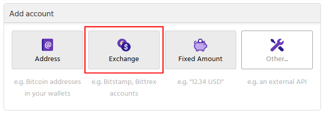 2. Click on the "Exchange" button to then add a Bitstamp account.