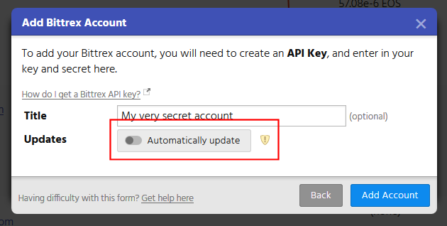 As part of this release, you can also add accounts or addresses without an associated API key/secret or address. Just turn off Automatically update when creating the account. Note that this will mean you'll have to keep the addresses up-to-date manually.