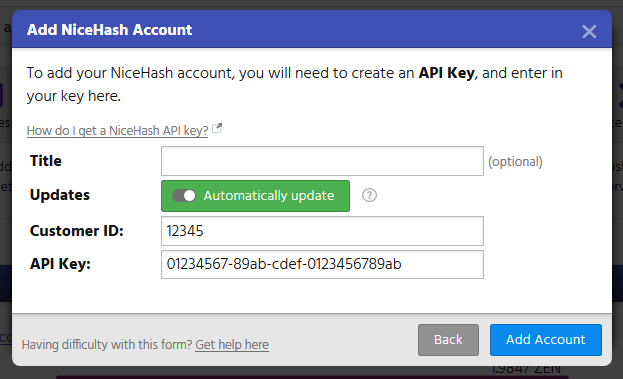 How do I add my NiceHash account?
