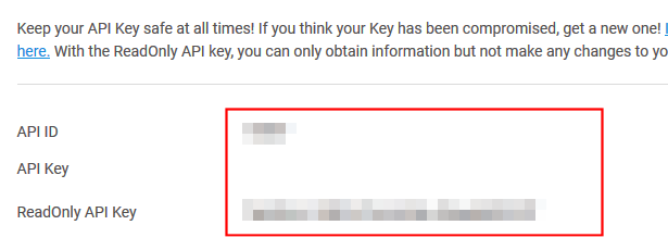 4. You will now have your NiceHash API ID and your ReadOnly API Key, ready to put into CryptFolio.
