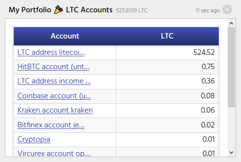 This table displays the latest balances for each account in your portfolio, that has a balance in one of your portfolio currencies.