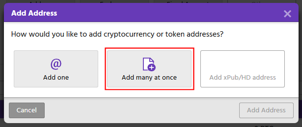 You can now upload a CSV, JSON, or plain text file of addresses into your portfolio. Each address in the file will be added as to your portfolio, and CryptFolio will automatically pick up the balances and transactions for each address.