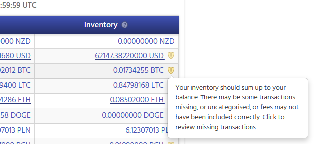 Finally, you will now only see an inventory warning symbol if your inventory does not equal your balance. If this is the case, then it's very likely that you are missing some transactions to correctly account for your inventory.