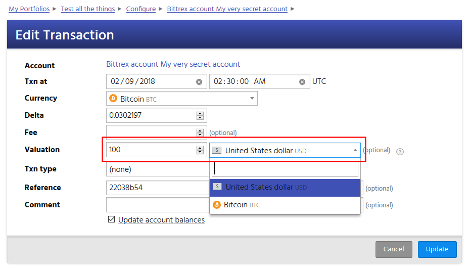 Today we have released an update allowing you to manually specify a valuation for a transaction. If you know the value of a purchase or sale, then you can specify this valuation by editing the transaction directly.