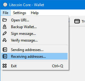 2. In the main menu, select File > Receiving addresses...