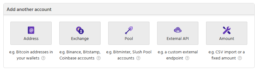 3. Here you can configure the accounts in your portfolio, using the Add another account form. Select the type of account that you wish to add, and follow the steps in the dialog that pops up.