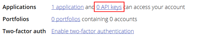 To create API keys for your portfolio, visit Your Profile and select "API keys".