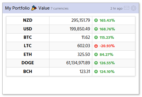 We've also added new gain/loss markers for the Portfolio Balances and Portfolio Value charts. By default, these display the gain/loss for a particular currency over the last week. (Soon this period will be configurable.)