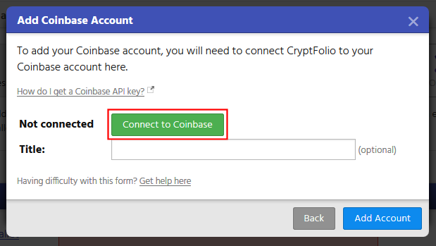To add your Coinbase account to your CryptFolio, follow these steps: