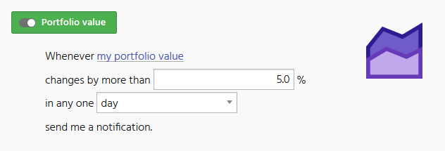 Today we have released portfolio value notifications. You can now automatically receive an email when your portfolio value changes over a time period, for example by 5% in any one day: